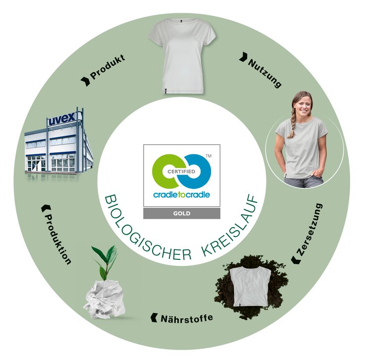 At the A+A 2021 in Düsseldorf, uvex is presenting its own head-to-toe sustainable product system: The planet series. One of many highlights being shown by uvex is the first completely compostable workwear collection: uvex suXXeed greencycle planet. In this workwear collection, every button, every piece of yarn and all packaging is certified Cradle to Cradle™ gold.