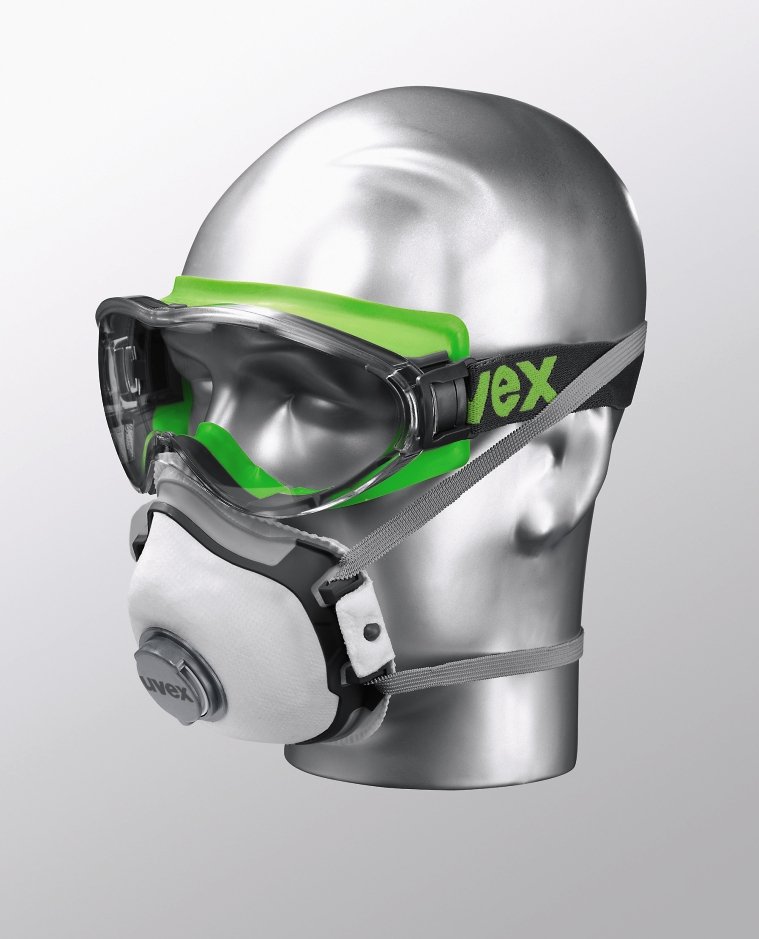 The result of this combined expertiseis the three dimensional shape of uvex silv-Air respirators. They ensure an optimum, close fit of safety eyewear, without slipping and wobbling. As the equipment remains firmly in place, optimum eye protection is guaranteed. uvex preformed and folding masks are therefore particularly suitable for combination with uvex safety eyewear.