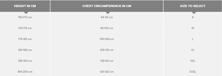 To ensure an optimum fit and keep the wearer safe when working with hazardous substances, uvex disposable coveralls are available in multiple sizes. However, the correct size may not be the same as your usual clothing size. Use the following overview to find the correct size based on your height and chest circumference.