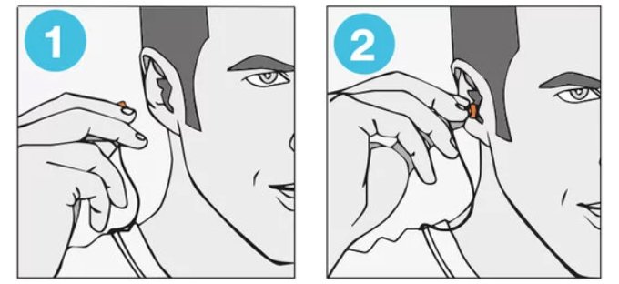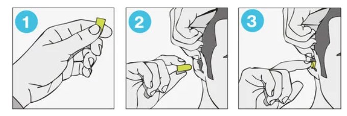 (2) Insert uvex ear plugs into the auditory canal, applying gentle pressure.