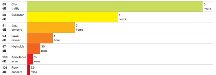 It is essential to protect our ears from harmful levels of noise, but how do we know what is a “harmful level”? The maximum periods of time a person should be exposed to harmful noise per day without hearing protection can be surprising.