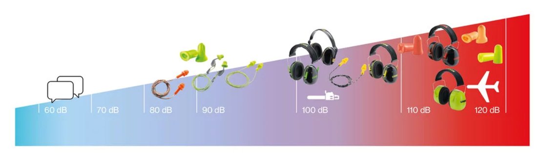 There are many types of hearing protection in South Africa which are suitable for different situations and if you work in or are passing through high-noise level areas you need the right level of protection. It is important to strike the right balance between the need to adequately protect your hearing from dangerous noise while not compromising your ability to hear and communicate. The below chart gives you an overview of which uvex earplug may be suitable based on the noise level.