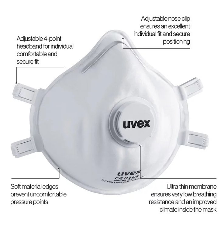 All uvex respirators are tested and approved in accordance with the European standard 149. This is standard setup a wide range of requirements for respirators, with the aim of providing the user with the highest level of protection and comfort.